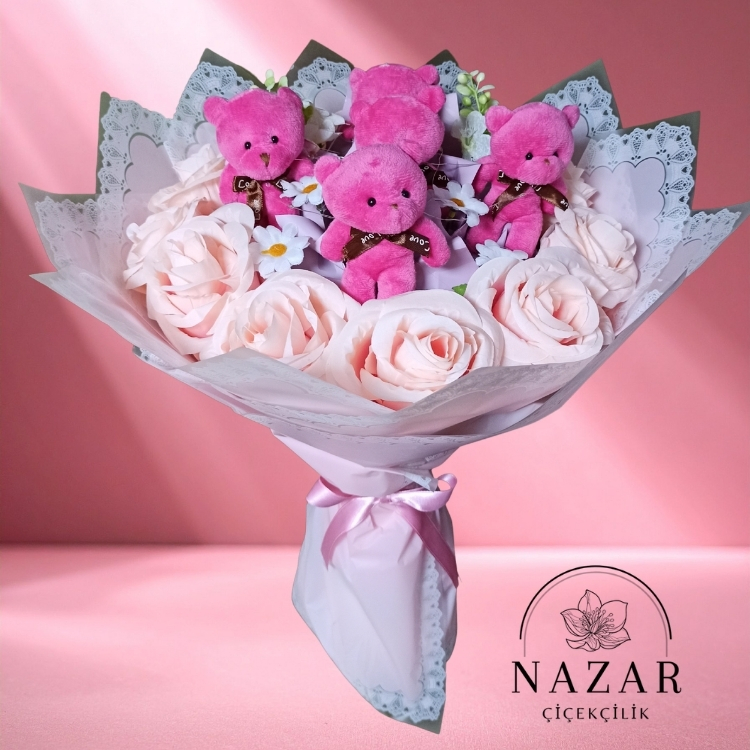 "5 Ayıcıklı Pembe Demet"