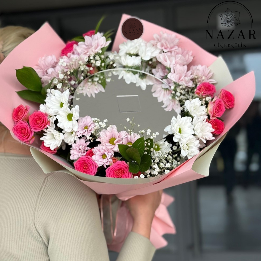 Bu özel tasarım, Sivas Nazar Çiçekçilik ustaları tarafından en taze ve kaliteli çiçekler seçilerek hazırlanmıştır. Sevdiklerinize duygularınızı ifade etmenin en şık yoludur.