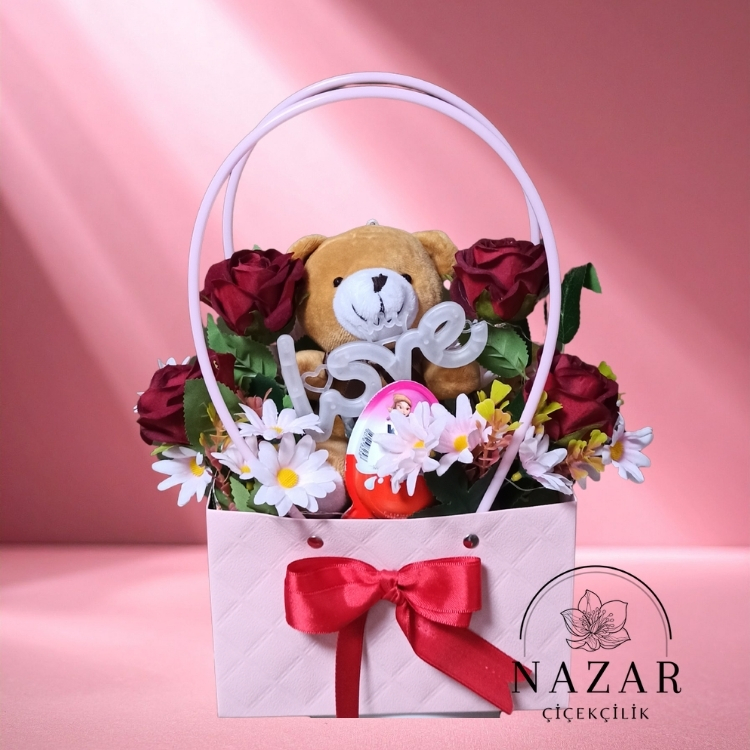"1 Ayıcık , 4 Adet Gül ve 1 Kinder Sürpriz ile Hazırladığımız ''LOVE'' ışıklı Çanta Tasarımımız"